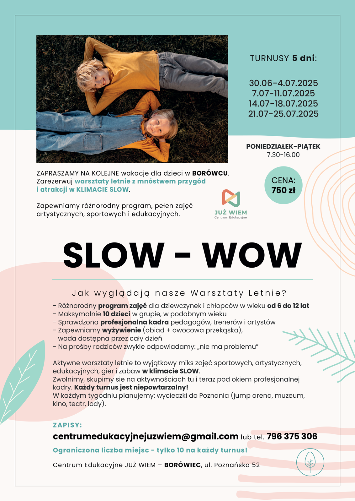 1. Organizatorem Warsztatów jest Centrum Edukacyjne Już Wiem S.C., ul. Poznańska 52, 62-023 Borówiec.